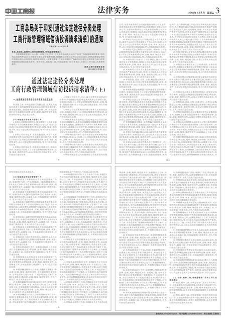通过法定途径分类处理工商行政管理领域信访投诉请求清单(上)