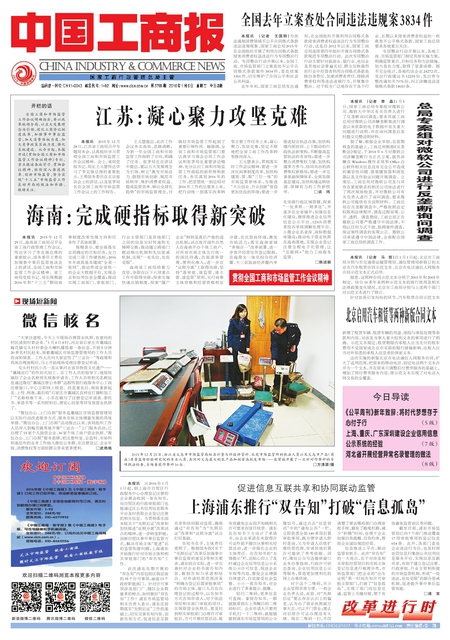 全国工商和市场监管工作会议明确指出,要以改革统领全局,以五大发展理念为引领,深化工商登记制度改革,加强事中事后监管,加大消费维权力度,加大竞争政策实施力度,强化系统建设。从今日起,本报开