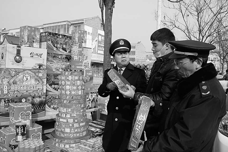 □河南省民权县工商和质量技术监督局1月4日启动了为期两个月的烟花爆竹市场整治行动,对居民区、集贸市场、城乡接合部等进行全面检查,严厉打击非法制售假冒伪劣烟花爆竹违法行为,确保群众生命财产安全。□冯广超/摄