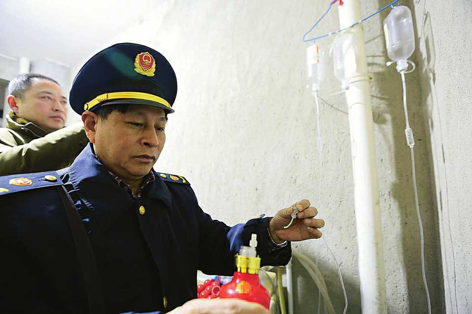 经过前期的调查,工商、公安部门迅速出击,一举查获隐藏在某居民小区的假酒生产窝点。执法人员现场发现该窝点杂乱,工人将桶装散酒通过漏斗灌装到各种回收的品牌白酒瓶中,对瓶口带有防伪保护的高档白酒则使用医用吊瓶进行滴灌,然后直接封口、包装。