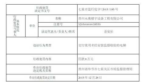 贵州:永奥楼宇设备工程公司交付使用不合格电梯案