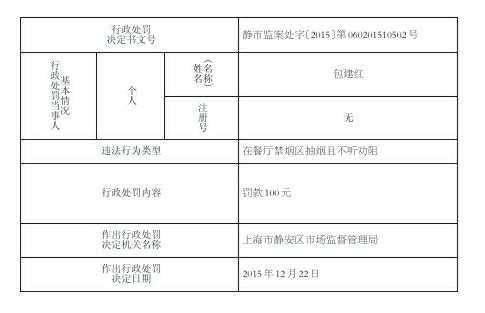 12月15日,执法机关对当事人下达行政处罚决定书。执法机关认为,当事人的上述行为,违反了《上海市公共场所控制吸烟条例》第七条第一款第(二)项的规定,构成在餐厅禁烟区抽烟且不听劝阻的违法行为。根据《条例》第十八条第(四)项之规定,执法机关责令当事人立即改正违法行为,并处罚款。
