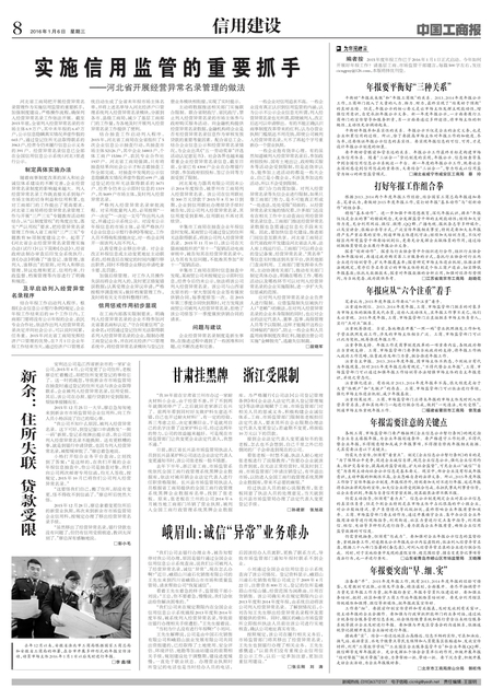 河北省工商局把开展经营异常名录管理作为实施信用监管的重要抓手,加强制度建设,严格操作流程,确保列入经营异常名录工作依法开展。截至2015年底,全省列入经营异常名录的市场主体6.9万户,其