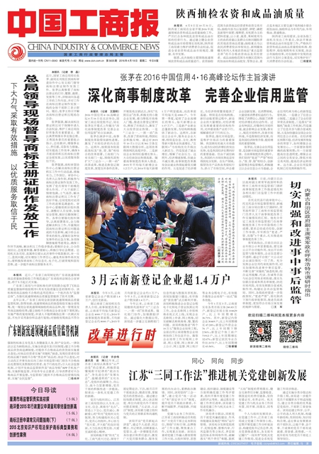 本报讯 (记者 王国明)2016中国信用4·16高峰论坛4月16日在北京举办,国家工商总局党组书记、局长张茅在开幕式上作题为“深化商事制度改革完善企业信用监管”的主旨演讲。