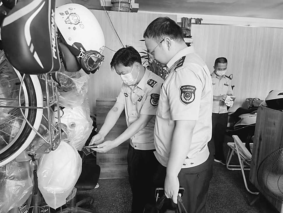 本报讯 将使用过的配件包装成新品,堂而皇之地摆在货架上待用……7月9日,福建省厦门市集美区市场监管局联合公安、城管、消防等部门在开展电动自行车联合检查中,一家店铺将“三无”旧品充当新品卖,被执法人员逮个正着。